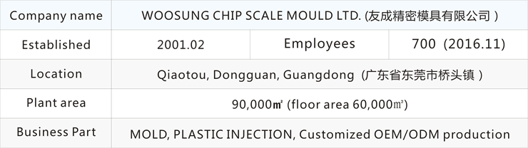 本公司创立于2001年,是一家从事OEM&ODM产品之制造厂家。从产品设计服务、模具制作、塑胶注塑成型、表面加工处理、到产品组装等都是我们的业务范围。 公司占地面积90,000平方米,实际使用面积超过60,000平方米,公司采用环保设计。